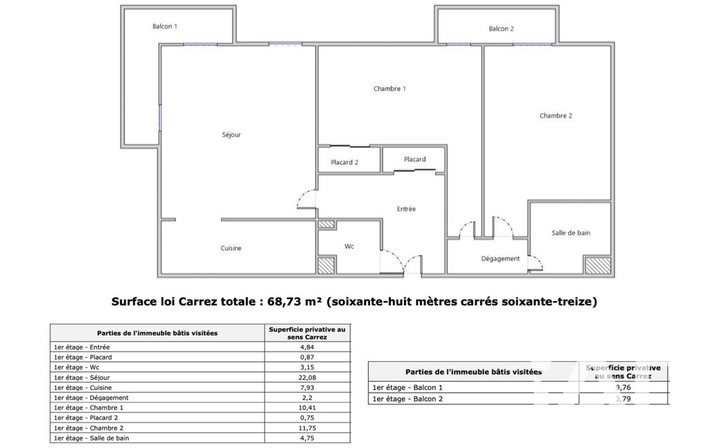 - Surface habitable : 69 m²