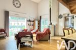 la pièce de vie spacieuse et lumineuse avec plafond cathédrale. Vous serez accueillis par un poêle à bois/granules programmable. Une mezzanine de plus de 16m2 sera idéal pour un bureau ou un coin détente.