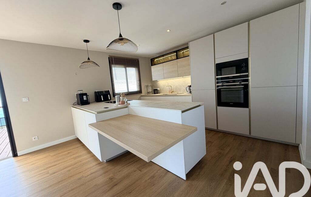 Elle offre une cuisine américaine moderne, aménagée et équipée avec des matériaux de qualité, ouverte sur un séjour lumineux, idéal pour partager de beaux moments en famille ou entre amis. Un cellier attenant à la cuisine vient compléter cet espace, offrant un rangement pratique et fonctionnel au quotidien.