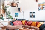 À l’étage, l’espace se fait plus intime et cosy :