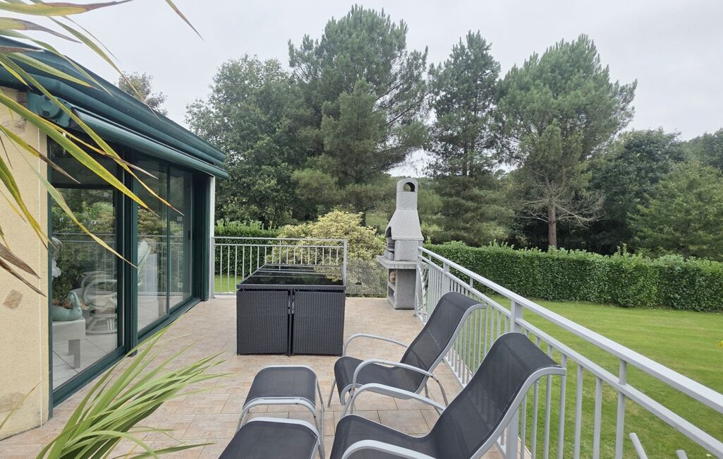 Profitez de la véranda chauffée par un poêle à granulés, un espace idéal pour vos repas ou vos moments de détente, quelle que soit la saison.