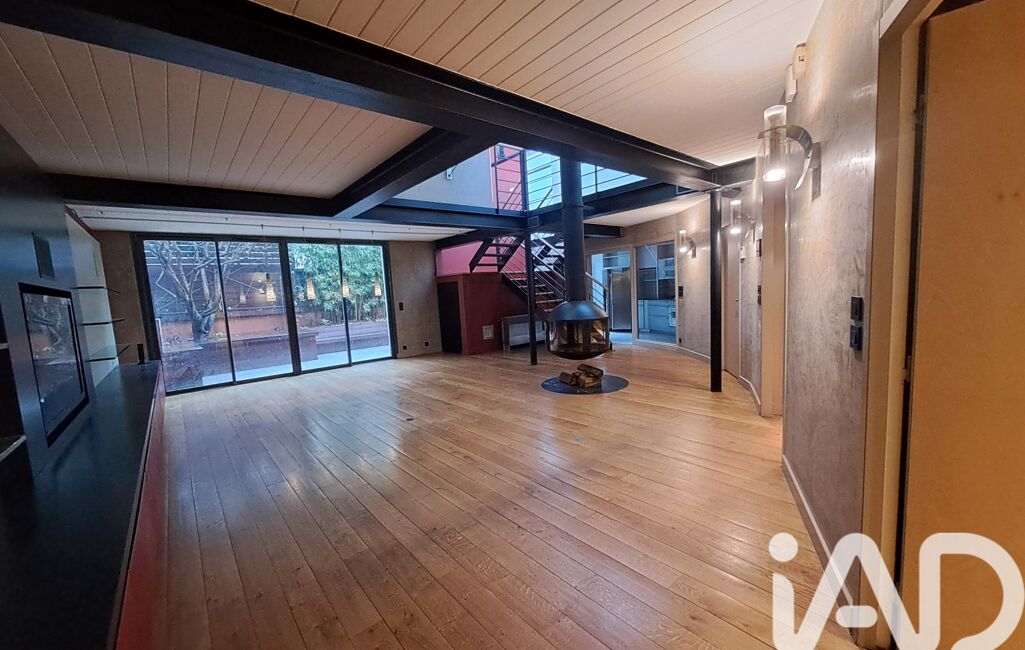 iad France - Sandrine Dorier vous propose: Lyon 8, Avenue Paul Santy, proche de la place du marché Général André, poussez la porte de cette ancienne usine de LYON transformée en une petite copropriété avec une cour intérieure au calme. Amateur de bien atypique , laissez vous surprendre par ce magnifique LOFT d'architecte de 160M2 (170m2 au sol) mélange de bois, de poutres, d'acier, parquet chêne, au milieu de la pièce de vie trône la cheminée suspendue FOCUS. Pour les beaux jours, vous profiterez de la terrasse en bois de 42 m2 végétalisée exposée sud est sans vis à vis avec sa plancha .