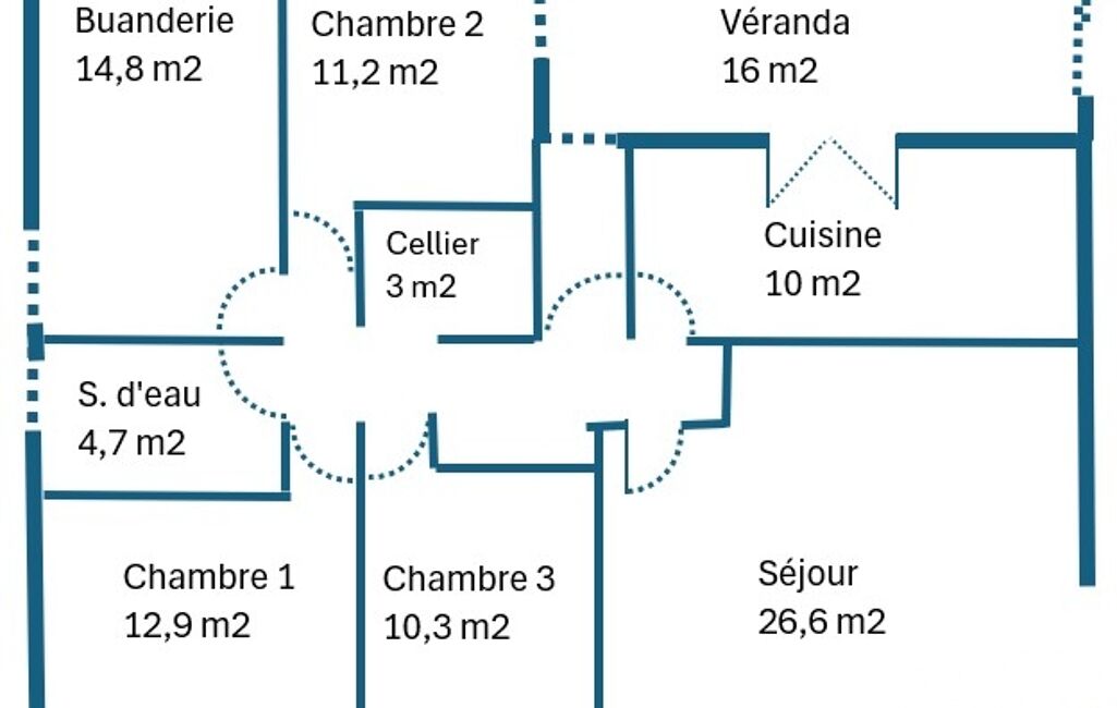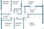 Cette maison, très saine et entièrement repeinte se compose de 3 chambres, un séjour avec cheminée, une cuisine, une salle de bain, un wc indépendant, une vaste buanderie, un cellier et une véranda. Vous pourrez aisément la mettre à votre goût ou la ré agencer car les cloisons intérieures ne sont pas porteuses.