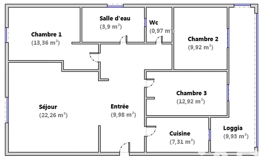 - 3 chambres dont 2 avec placards intégrés