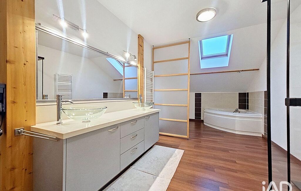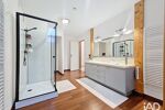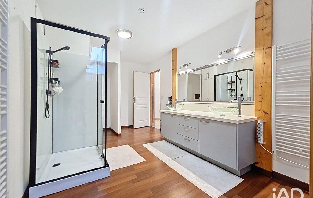 À l’étage, vous découvrirez trois grandes chambres (de 12,50m² environ, 22m² environ et 11m² environ), ainsi qu’une spacieuse salle de bain avec douche et double vasque, pensée pour le confort de toute la famille.