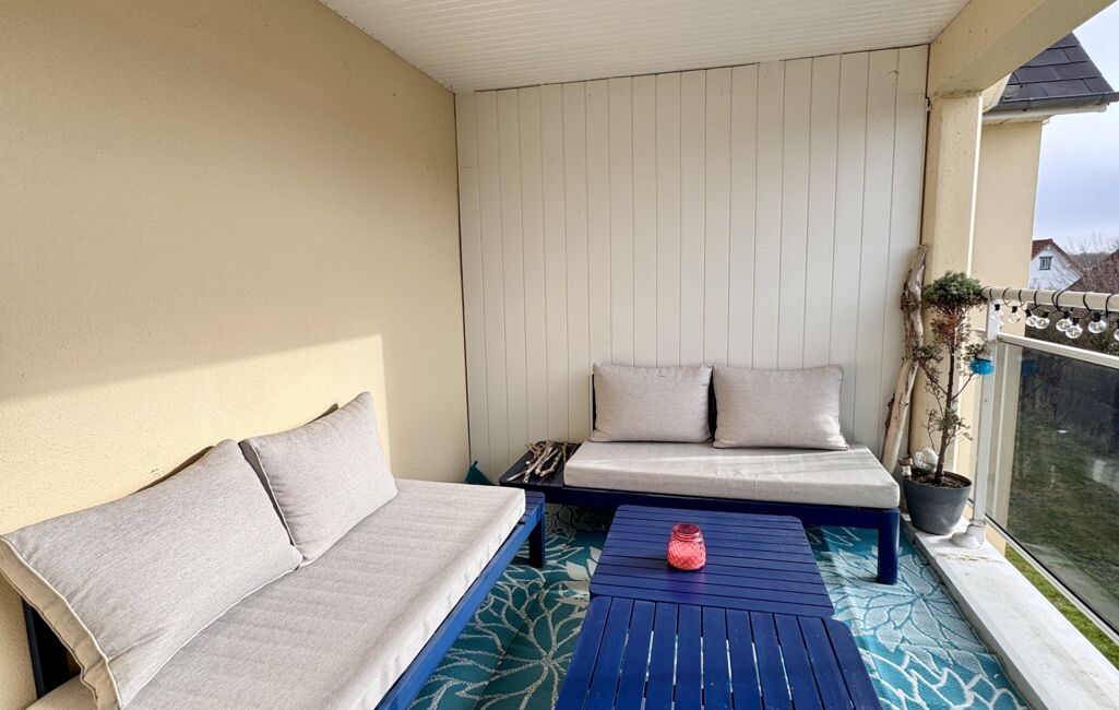 Une accueillante terrasse couverte (8m2) vous attend ainsi qu'une place de parking privative.