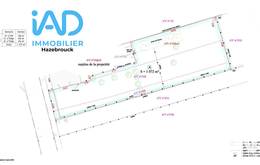 - Superficie terrain : 1072 m²
