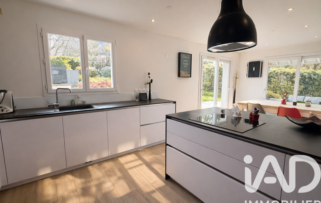 Au rez-de-chaussée, vous trouverez un vaste espace de vie lumineux de 50m2 avec cheminée ouvert sur une grande cuisine équipée Schmidt changée en 2021. Les grandes baies vitrées offrent une luminosité naturelle et une vue agréable sur le jardin et la piscine.