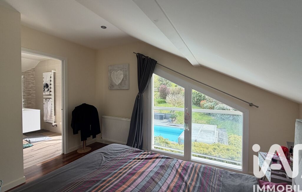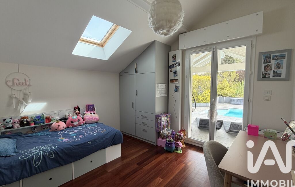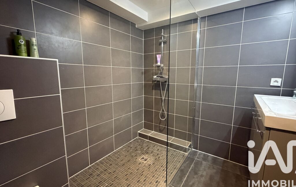 À l'étage, une vaste mezzanine pouvant faire office de salon tv ou bureau ainsi que 3 chambres chacune avec leur propre salle de bain et wc dont une en suite parentale avec son dressing.