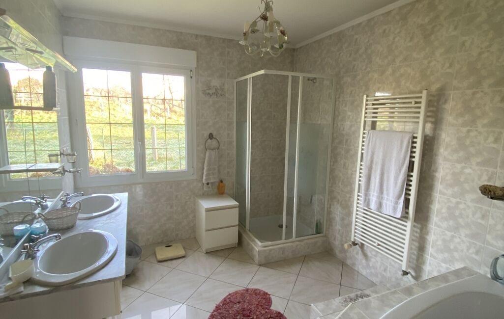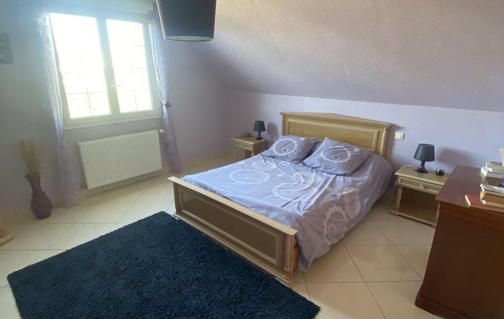 À l'étage, deux chambres supplémentaires offrent intimité et confort, avec une vue dégagée sur le jardin verdoyant. Trois toilettes réparties sur les différents niveaux offrent praticité et fonctionnalité pour toute la famille.