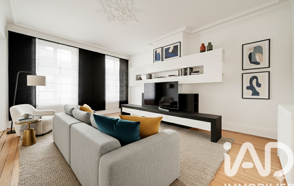 iad France - Matthieu Mougel vous propose: Dès l’entrée, cet appartement séduit par son cachet de l’ancien, ses magnifiques moulures et surtout ses volumes généreux.