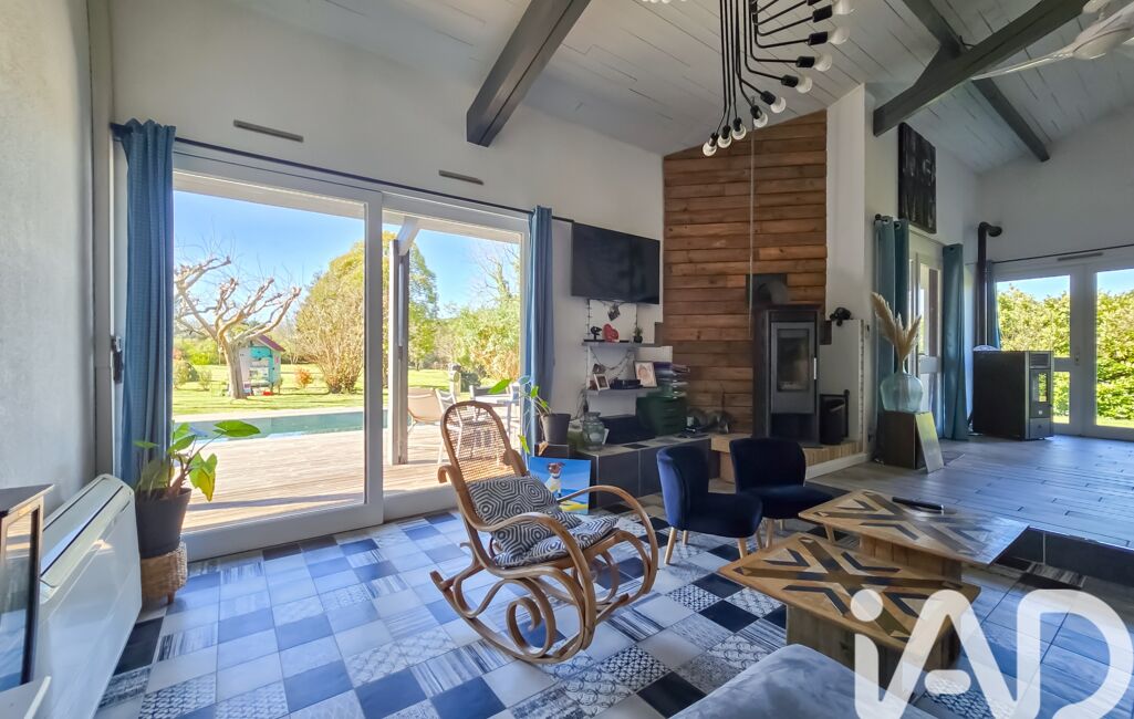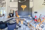 Arrêtez-vous un instant dans le salon, marqué par ses carreaux de ciment, sublimé par un PLAFOND CATHÉDRALE et offrant un accès direct à la terrasse et à la PISCINE.