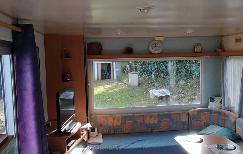 * Mobil-home de 27 m², pouvant accueillir jusqu’à 6 couchages, raccordé à un système d’assainissement