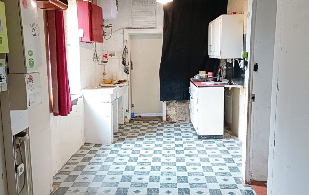 La maison comprend actuellement un séjour, une cuisine à terminer ou à repenser avec la possibilité de l’installer dans le cellier, deux ou trois chambres au rez-de-chaussée dont une en enfilade, un bureau, une salle de bain et un WC.