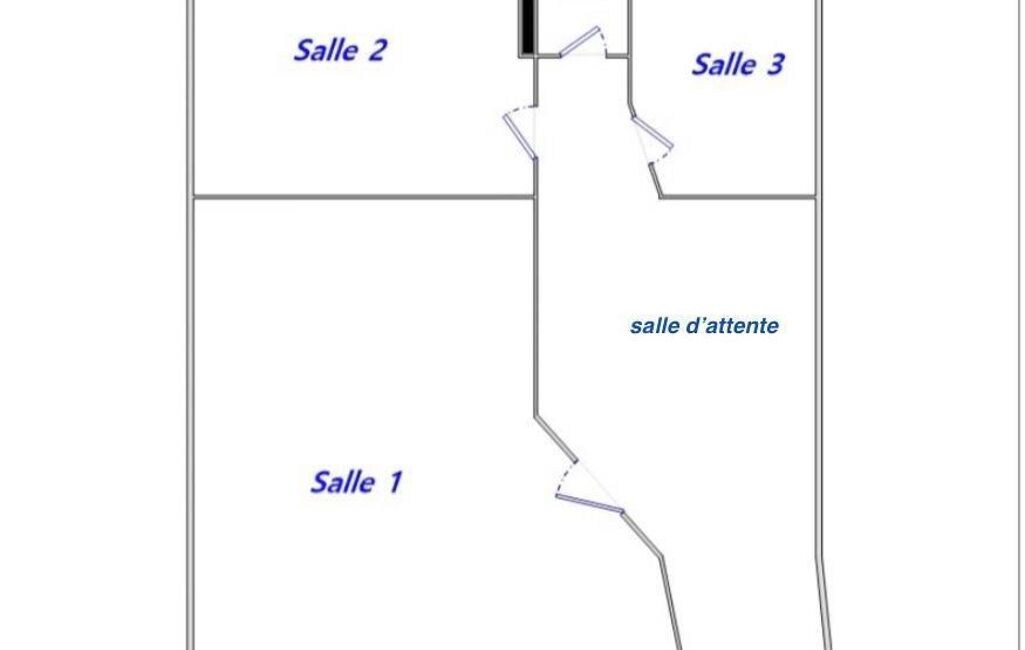 Le local se compose de trois bureaux, d’un espace d’accueil / salle d’attente et de sanitaires indépendants, avec une circulation fluide et parfaitement adaptée à un usage professionnel.