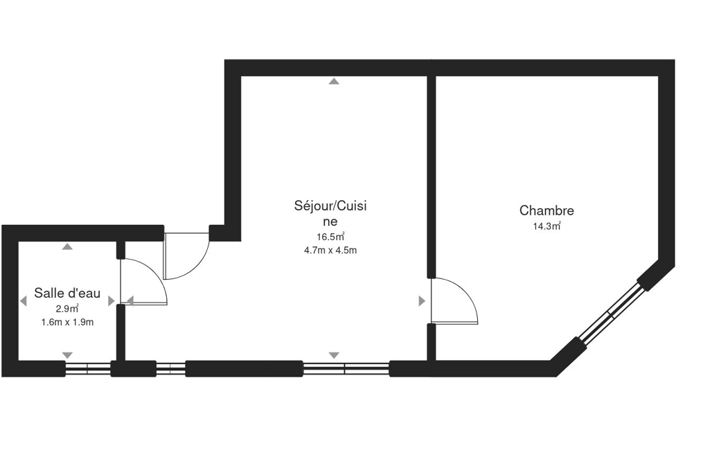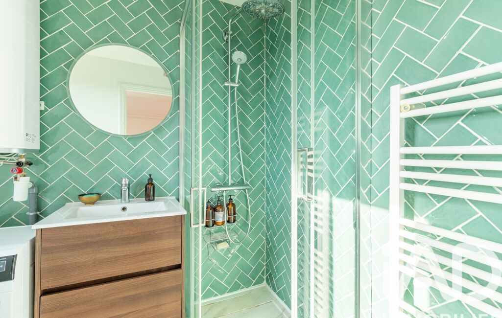 Il comprend un séjour spacieux et LUMINEUX de par sa vue dégagée avec cuisine ouverte équipée, une grande chambre de 14m² ainsi qu'une belle salle d'eau avec douche et w.c.