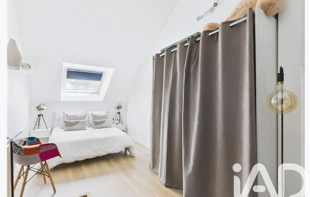 A l'étage sur 14 m² : Une chambre mansardées sur parquet équipées de rangements au dessus du garage ----