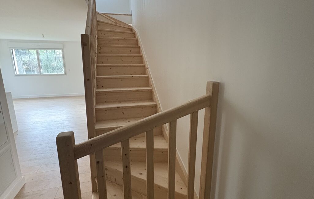 À l’étage : trois chambres, une salle d’eau et une salle de bain.