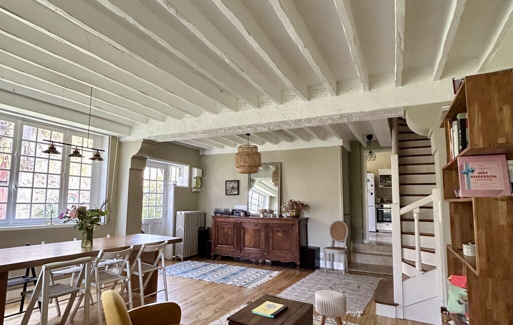 iad France - Clotilde Laguérie vous propose: Véritable bulle d'air et de quiétude grâce à son merveilleux jardin, tout en étant au coeur de la ville de Vernon avec la gare accessible à pied en quinze minute, cette belle maison vous raconte une histoire... Les propriétaires ont a eu à coeur de préserver l'esprit du lieu et de valoriser les marques du temps . Ses grandes ouvertures font entrer la nature dans la maison et apportent énormément de lumière. Ses matériaux anciens , poutres, tomettes, parquet, carreaux de ciment offrent chaleur et convivialité.