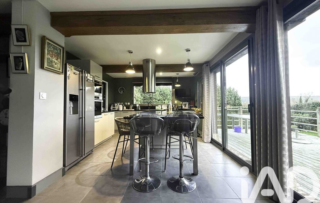 . Construite avec des matériaux de qualité, cette belle demeure normande avec un intérieur contemporaine d'une surface de 180 m².