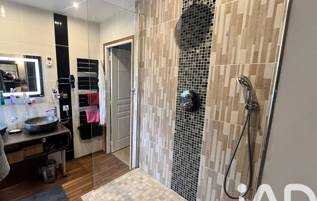 Au 1er étage, trois grandes chambres, une salle de bain, dont une suite parentale avec douche à l'italienne et dressing, une salle de sport. Un toilette indépendant .