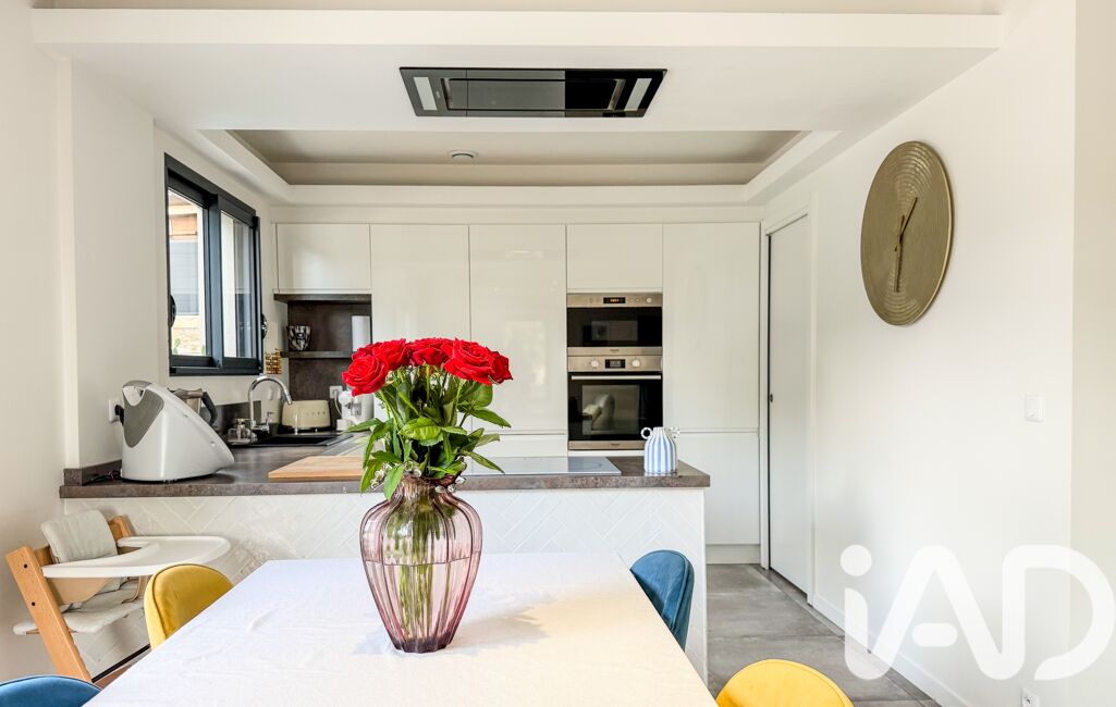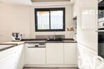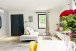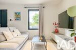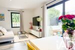 Le salon lumineux associé à une cuisine ouverte s'ouvre directement sur une terrasse en bois exotique, idéale pour vos moments de détentes avec une piscine sécurisée.