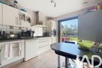 Une pièce principale baignée de lumière du jour, avec un confort moderne puisqu'une verrière mobile sépare la cuisine totalement équipée.