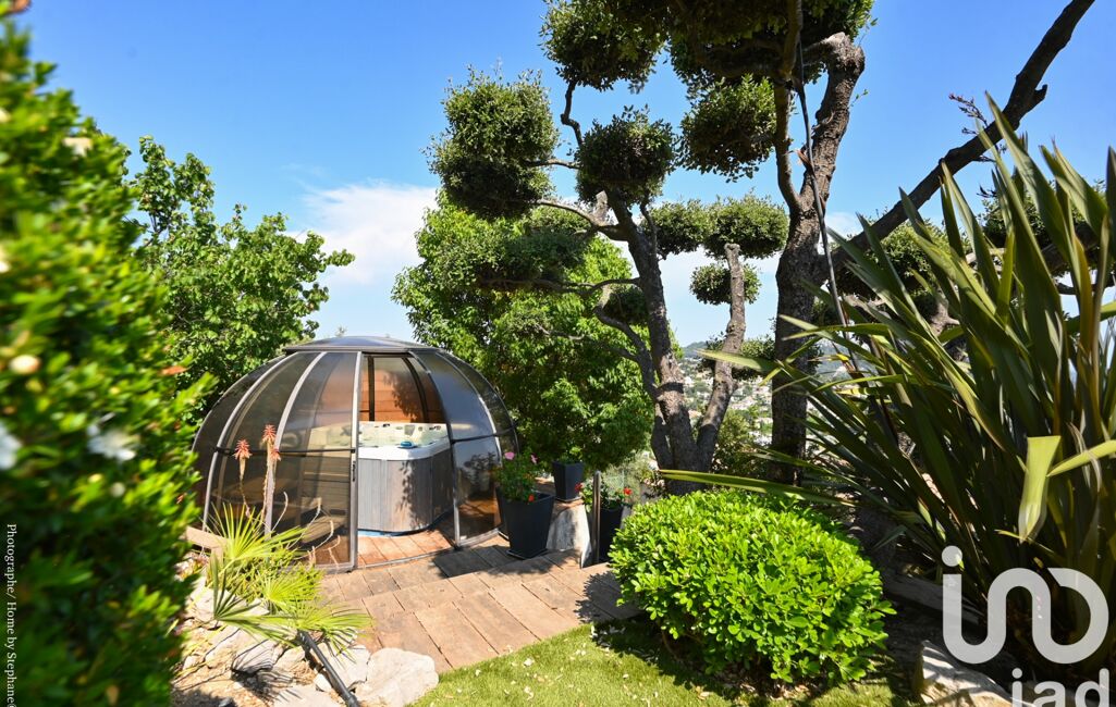 La propriété est édifiée sur un terrain paysager de 1100m², d'une piscine chauffée (10×5) avec grande terrasse carrelée entourée de transats, d'un jacuzzi sous bulle et d'un grand jardin arboré de plantes méditerranéennes avec arrosage automatique.