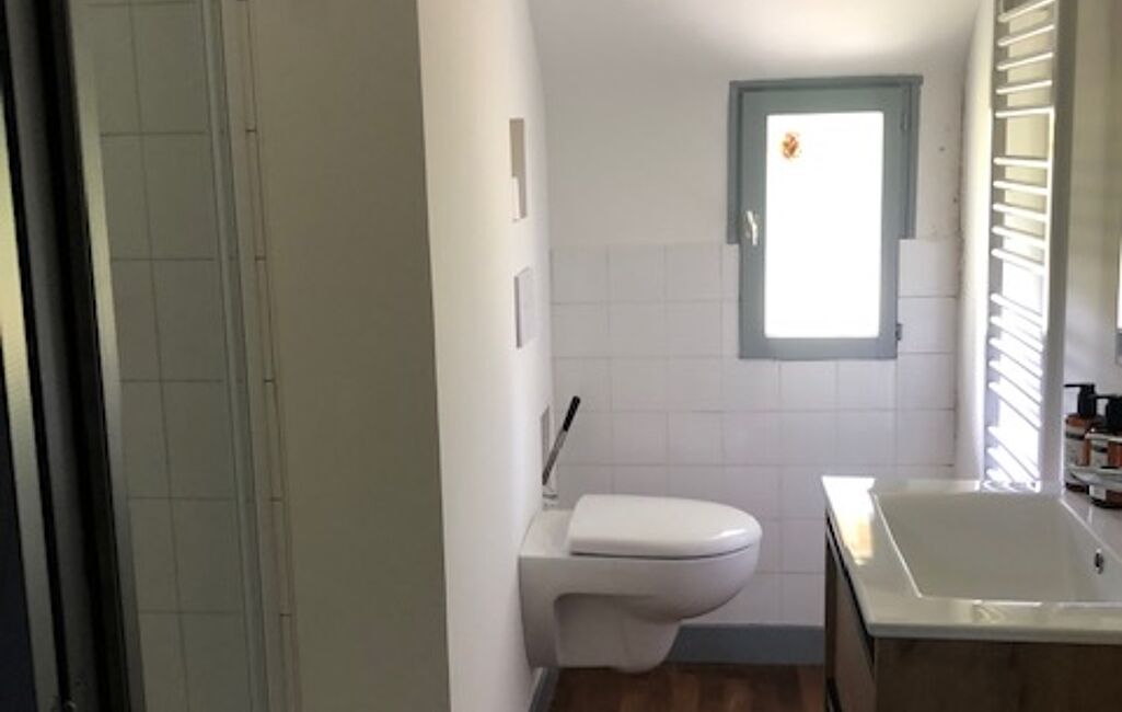 - Pièce de vie lumineuse, salle d’eau moderne et WC.