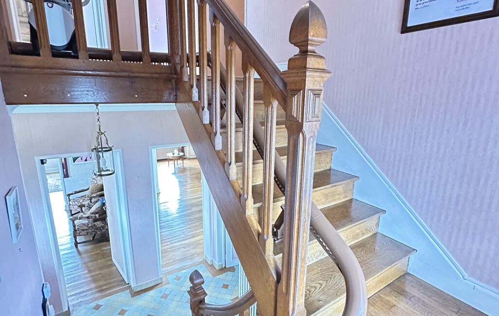 Derrière sa façade pleine de charme, cette demeure familiale dévoile de beaux volumes et une atmosphère chaleureuse, sublimée par ses éléments anciens préservés, notamment ses parquets en chêne parfaitement entretenus, qui apportent authenticité et élégance à l’ensemble.