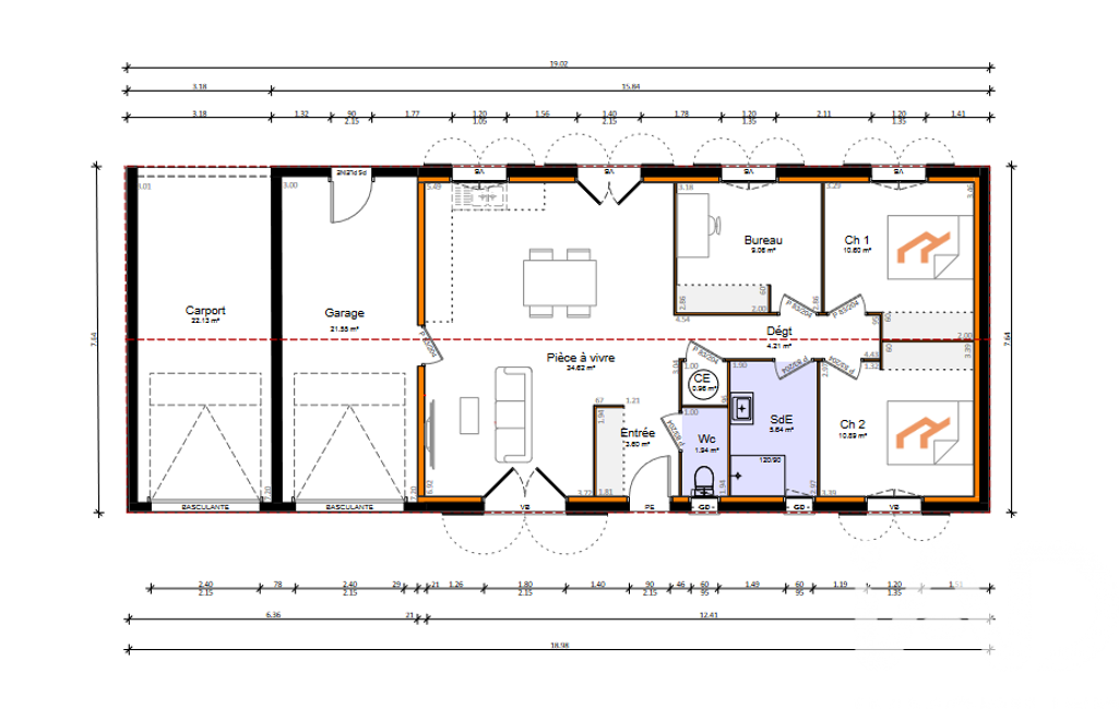 -Permis de Construire accepté pour une maison T4 de 80m2 environ de plain-pied avec garage de 21m2 environ et carport