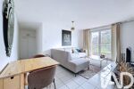 L'espace de vie se compose d'un séjour lumineux de 19.5m² ouvrant sur un balcon couvert avec une vue dégagée et arborée (pas de vis à vis).