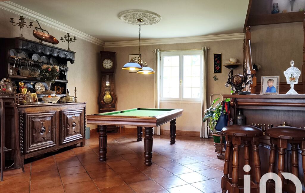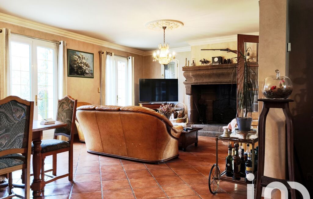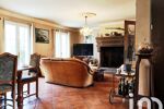 Dès l'entrée, un hall vous dirige vers le séjour spacieux avec cheminée en taille de pierre et la cuisine donnant accès à la terrasse extérieure et à la piscine.