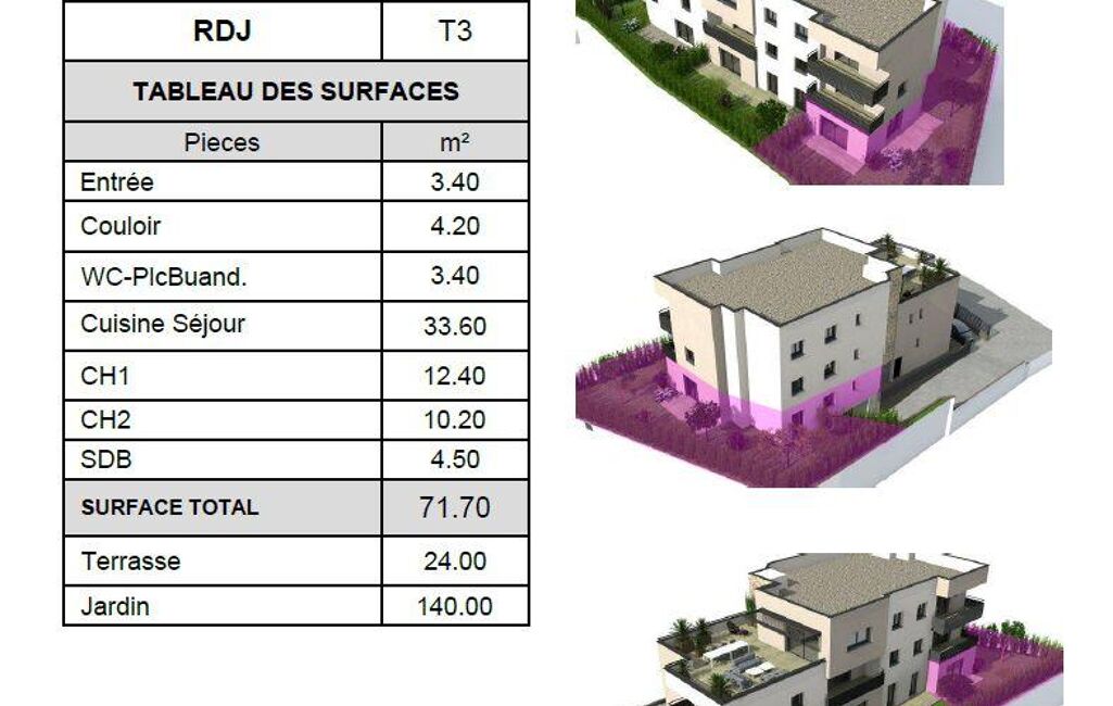 iad France - Marvin Merose (06 25 01 40 90) vous propose : À VENDRE – APPARTEMENT T3 NEUF EN REZ-DE-JARDIN – 72 m² environ – JARDIN 140 m² environ – TERRASSE 24 m² environ – SAINT-AYGULF