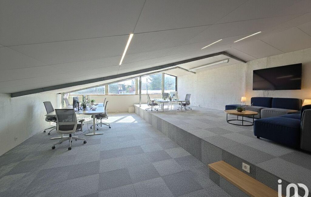 À l’étage, la cuisine ouverte avec bar de 9 m² environ dispose d’un cellier attenant de 9,34 m² environ au sol. Une pièce mansardée de 29,4 m² environ au sol avec une grande baie vitrée. La grande pièce ouverte de 60 m² environ, vitrée sur la face Sud, constitue le véritable atout du bien : un espace lumineux idéal pour un bureau principal, un open space ou un showroom.