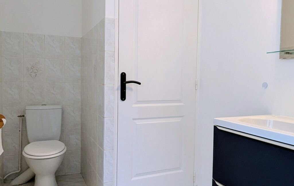 R+1 : entrée sur séjour / cuisine traversant de 20 m², placard sous escalier, 1 chambre, 1 salle de bain avec WC.