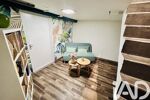 Sur un demi niveau, vous trouverez une entrée séparée avec un WC, un séjour ouvert sur une cuisine, tout équipée avec un grand salon et beaucoup de luminosité, grâce à ses multitudes De Fenêtre et son balcon.