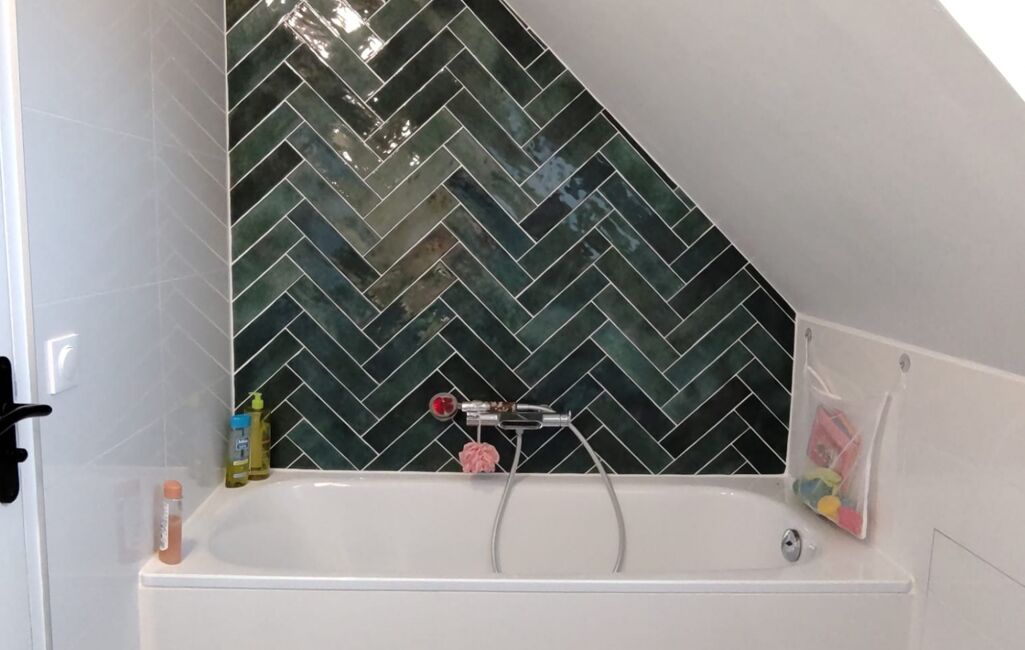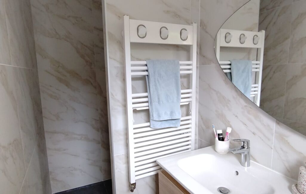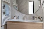Une salle de bain contemporaine neuve avec des matériaux ultra-tendances pour le confort de toute la famille.