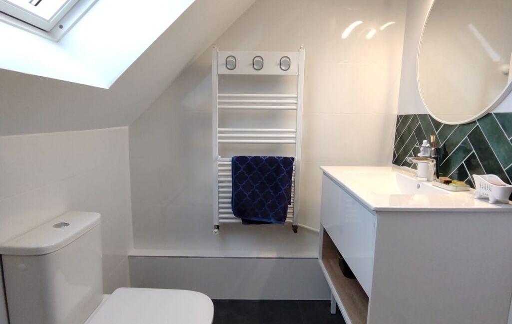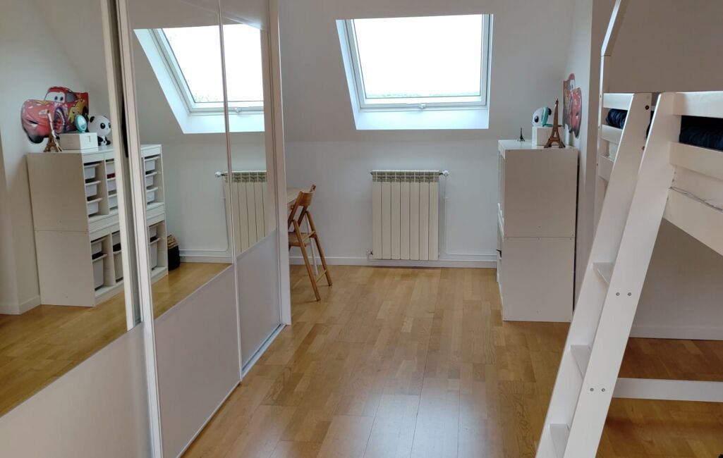 ✨ À l'étage, des volumes rares : Deux immenses chambres traversantes et baignées de lumière (18 m² et 21 m²) avec vélux panoramiques et chiens-assis, permettant ainsi, si besoin, de les séparer en 4 chambres de 9m2 à 10m2.