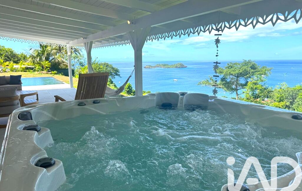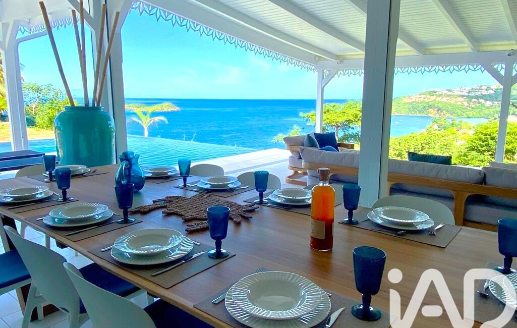 iad France - Hélène Moesta vous propose: Perchée sur les hauteurs les plus prisées de Bouillante, cette villa créole entièrement rénovée incarne le charme caribéen revisité dans un style contemporain raffiné. Depuis la terrasse, la vue est tout simplement spectaculaire : la baie mythique de Malendure, l’îlet Pigeon et la silhouette emblématique de la Réserve Cousteau, mondialement connue pour la plongée.