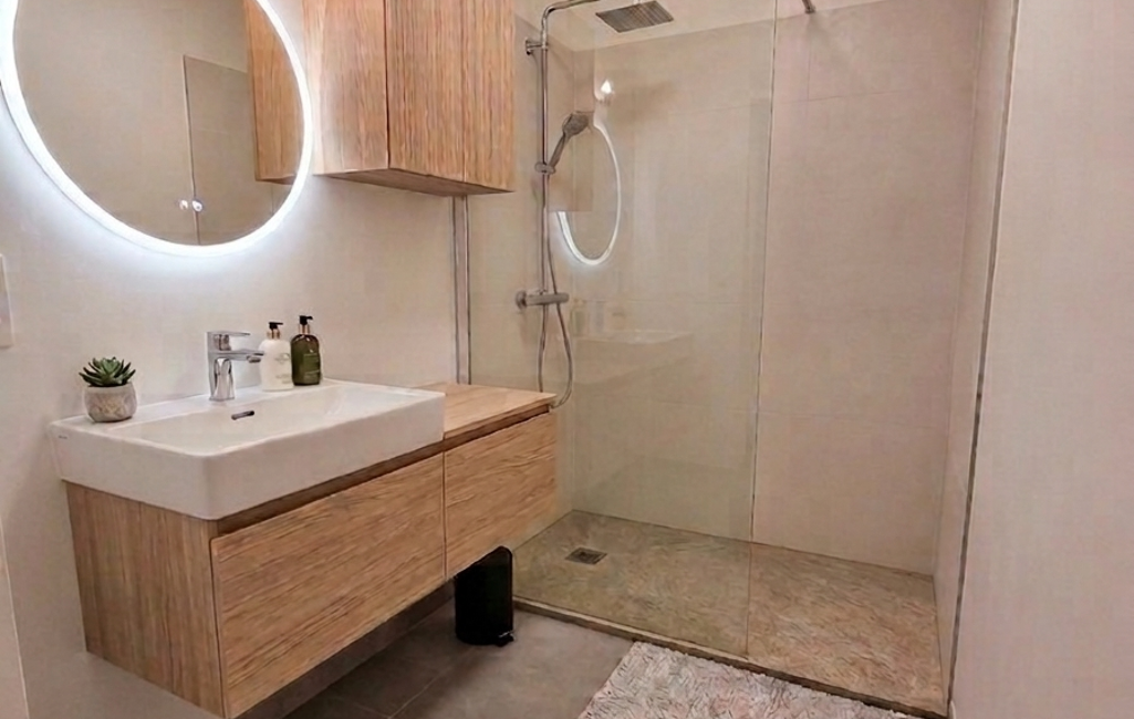 Une salle de bain ainsi qu’un WC indépendant.