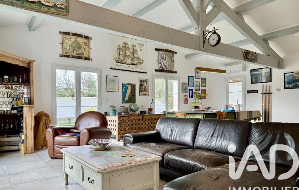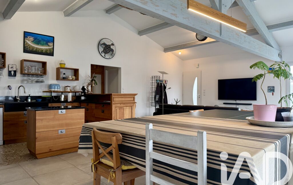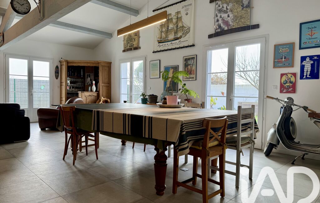 Dans un environnement paisible et recherché de Saint-Denis-d’Oléron, cette maison contemporaine de 107 m² avec piscine et studio, construite en 2019, séduit par ses volumes.