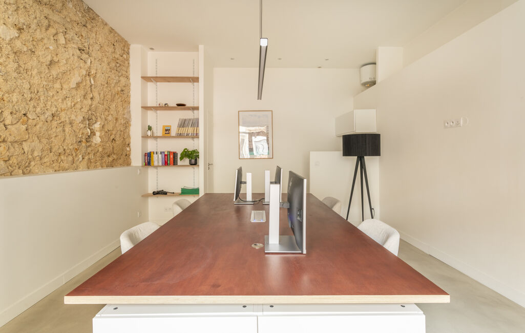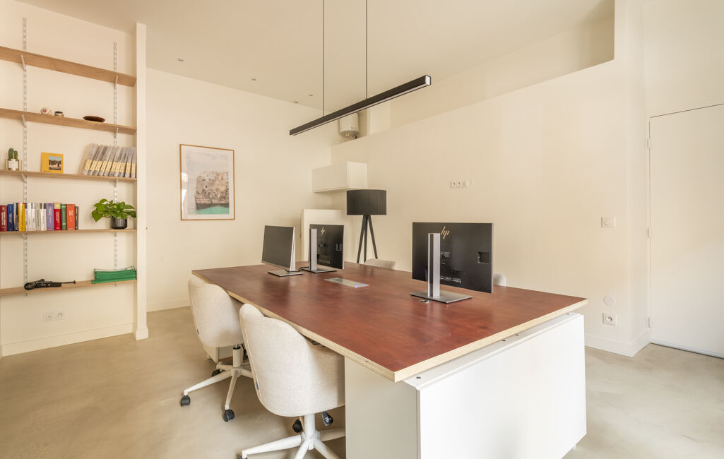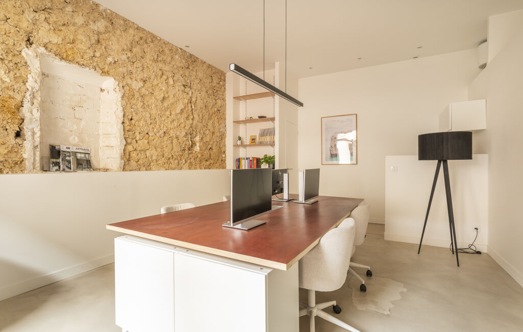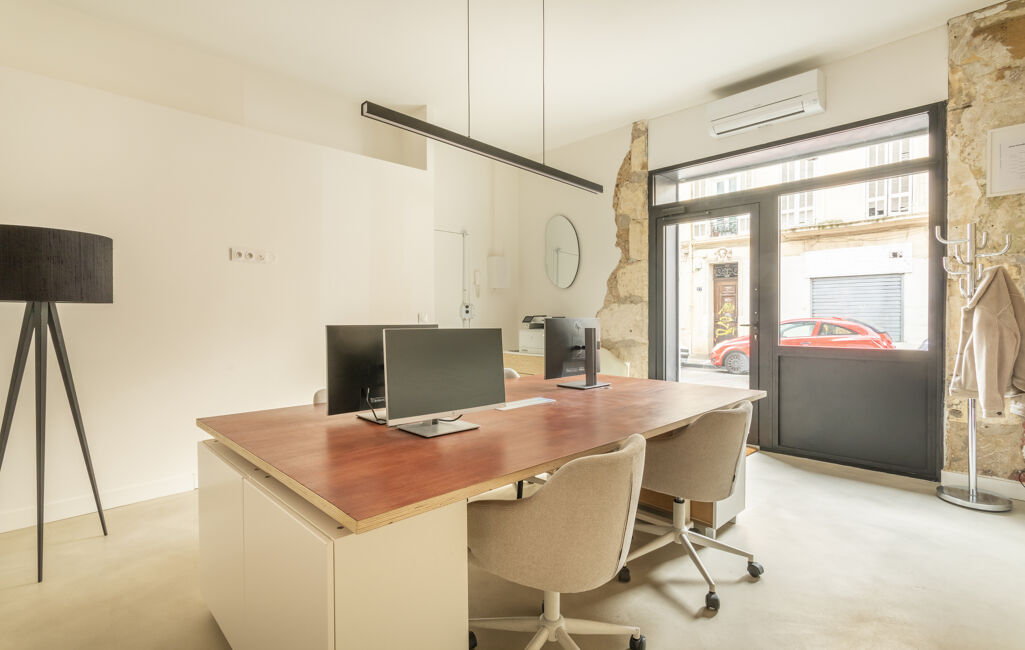 Actuellement bureaux, il peut accueillir tout autre projet. Entièrement rénové avec goût il dispose de toutes fonctionnalités: vitrine avec rideau électrique, climatisation, et grande cave de 28,52m2 accessible dans le local.
