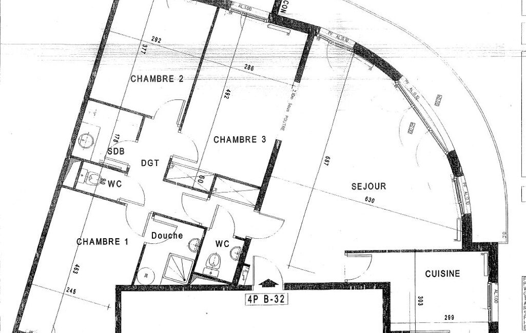 Avec un plan optimal sans perte de place, le bien situé au 3ème étage par ascenseur se compose : d'un grand séjour d'angle exposé Nord/Ouest de 32m2 avec balcon filant de 11m2, de deux grandes chambres exposées Ouest, d'une troisième chambre sur jardin intérieur exposé sud, d'une cuisine indépendante, de deux WC séparés, d'une salle de bains et d'une salle d'eau.