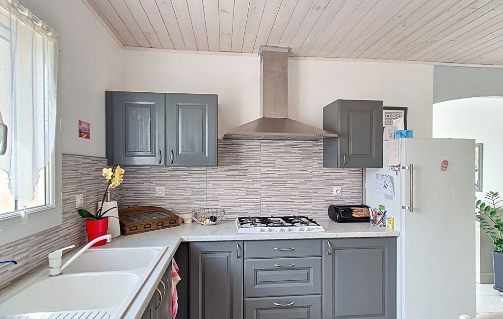 À Nuaillé-d’Aunis, cette maison non mitoyenne et de plain-pied, édifiée sur un terrain arboré d’un peu plus de 800 m² accueille près de 139 m² habitables, agrandis en 2006 pour offrir de vrais volumes familiaux.