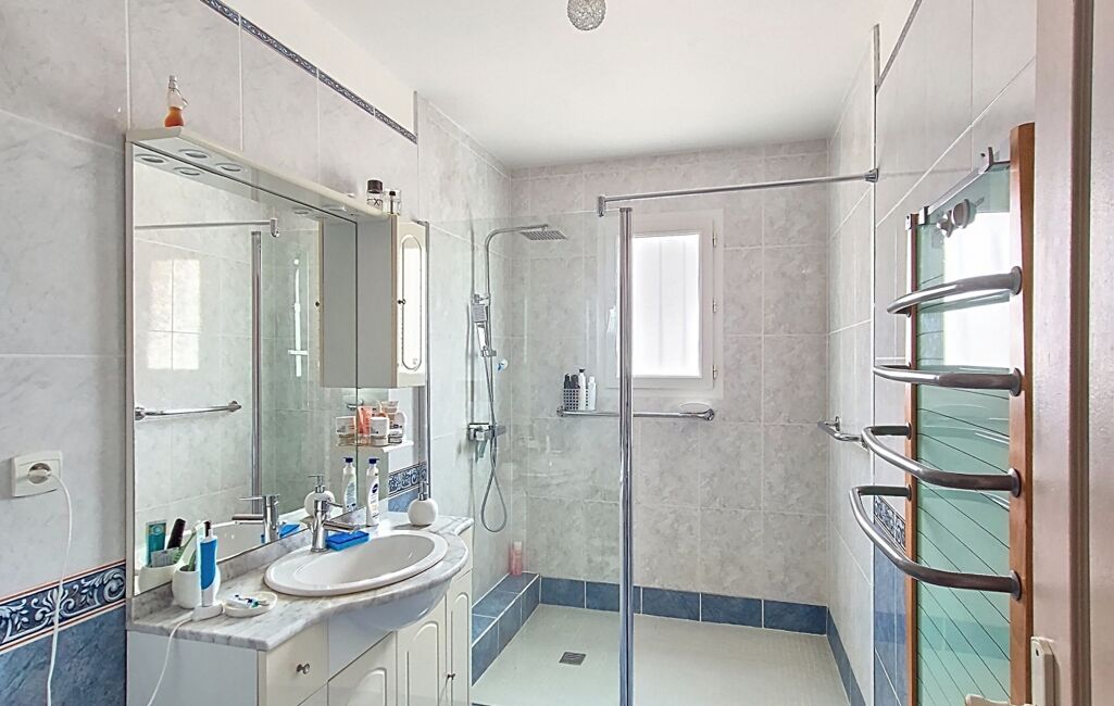 Dès l’entrée, la pièce de vie lumineuse vous enveloppe : cuisine ouverte , un cellier/buanderie, un salon/salle à manger climatisés par pompe à chaleur réversible, et grandes baies sur la terrasse. On passe aisément de l’intérieur à l’extérieur : barbecue qui crépite, enfants qui plongent dans la piscine … l’été s’invite toute l’année.