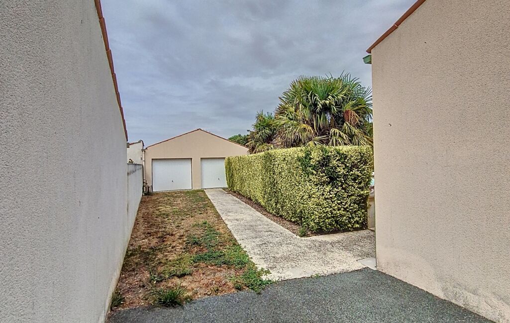 Derrière le portail, une vaste allée mène au double garage de 49 m² , de quoi abriter voitures, vélos, bateau, camping car et projets de bricolage.