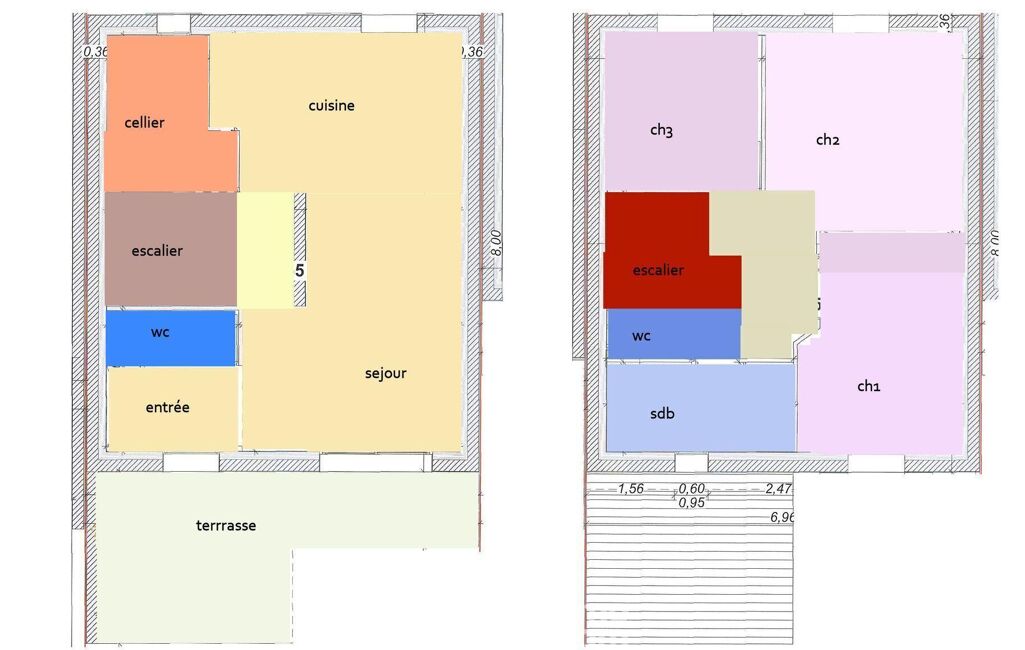 À l'étage, l'espace nuit propose trois chambres, avec la possibilité d'adapter l'agencement selon vos besoins (bureau, chambre d'enfant, espace polyvalent). Une salle d'eau ainsi qu'un second WC séparé complètent cet étage fonctionnel.
