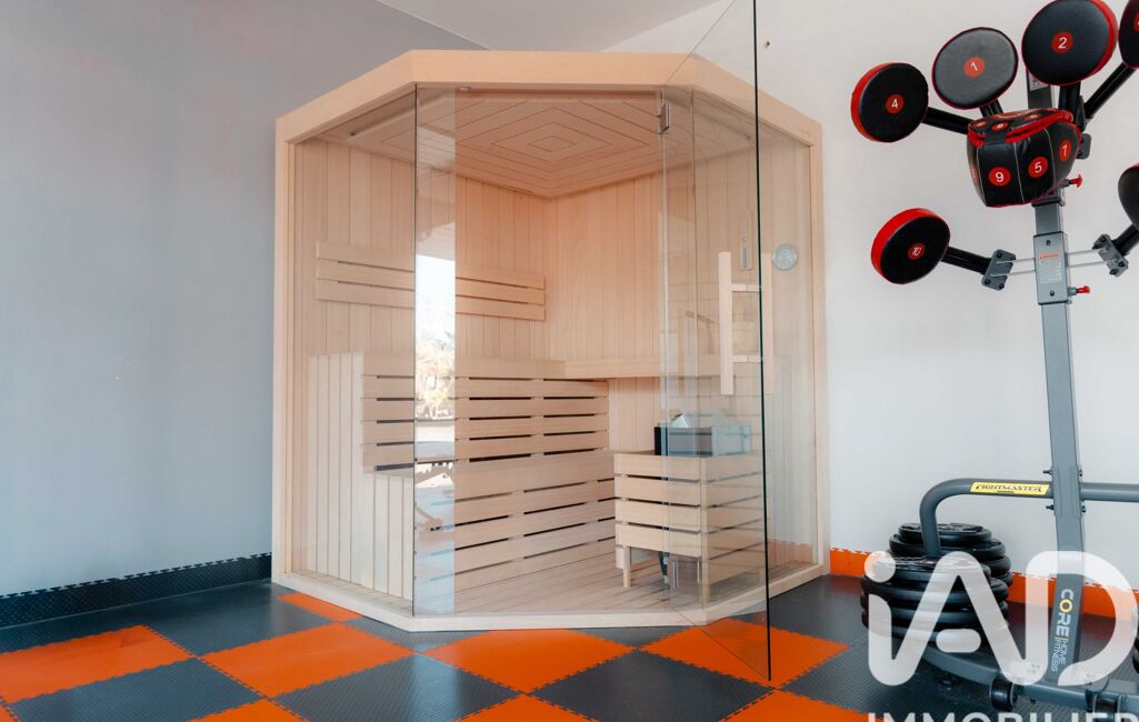 Le double garage, aménagé en espace sport et bien-être avec sauna, complète les prestations intérieures.