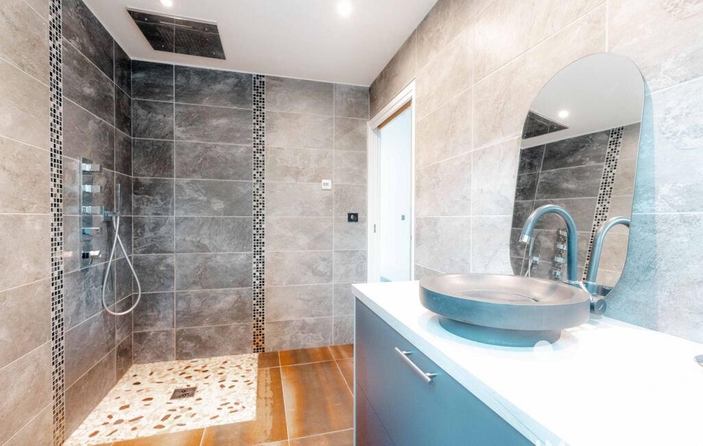 Plus de 500 m² de carrelage sur plots entourent la villa, permettant de circuler librement et d’accéder à tous les espaces extérieurs avec élégance et propreté. Deux terrains de pétanque et un stationnement pour sept véhicules complètent cet ensemble exceptionnel.